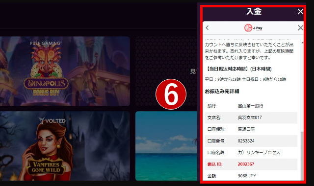カジノミーは入金・出金で銀行送金を使用できます。