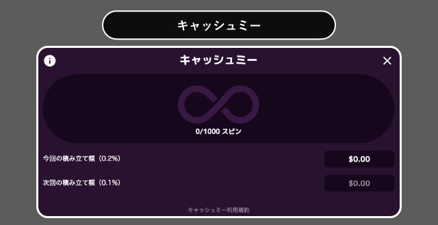 カジノミーの独自ボーナス制度「キャッシュミー」の仕組みは初心者でも分かりやすいです。