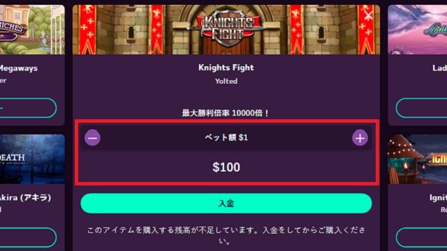 また、本来ならボーナス購入機能がついていないQuickspin社やPush Gaming社、カジノミー系列でしか遊べないYolted社のスロットも対象です。スロット好きなら一度は購入してみてください!