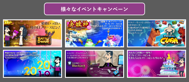 カジノシークレットでは、決まった曜日や季節の行事等にあわせて、お得なイベント・キャンペーンを開催しています。