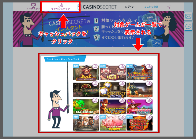 カジノシークレットは出金条件なしのキャッシュバックシステムを業界で初めて導入しました。