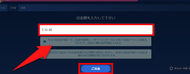 入金したい金額を半角数字で入力し、「$〇をご入金」をクリックしてください。