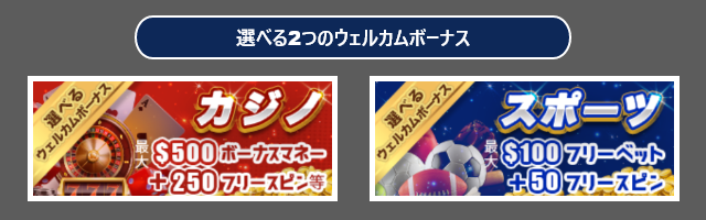 | カジノ用ウェルカムボーナス | 最高$500初回入金100%ボーナス+250回フリースピン。$50以上入金の場合さらに$5フリーベット進呈。 |