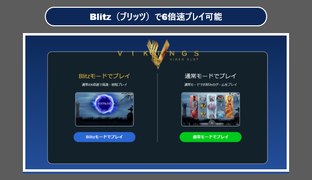 Blitz(ブリッツ)モードとは、対象スロットを6倍速でプレイできるカジ旅系列オリジナルの機能です。