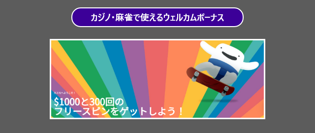 | ボーナス | ・カジノ&麻雀に使える$1,050+300回フリースピンウェルカムボーナス ・スポーツベットに使える$250ウェルカムボーナス ・曜日別ボーナス ・カスモアドベンチャー |
