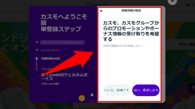 カスモでは新規プレイヤー向けにウェルカムボーナスを提供しています。