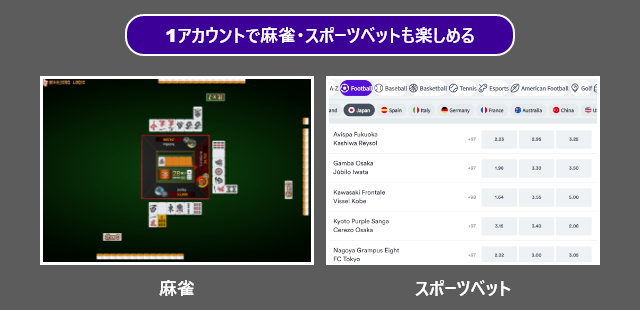 カスモではカジノゲームだけでなく、麻雀やスポーツベットも楽しめます。