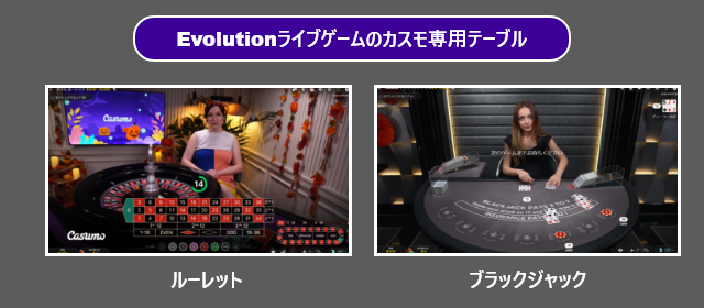 カスモはライブカジノ最大手Evolution Gamingと契約し、カスモ専用テーブルでルーレットとブラックジャックを提供しています。