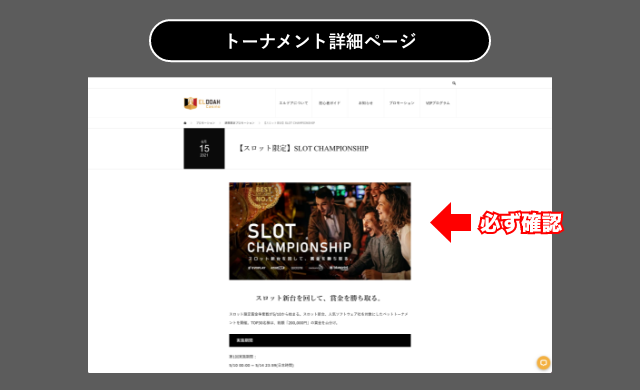 トーナメントによって参加方法が異なる場合があるので、プロモーションページにて参加希望のトーナメントの利用規約・詳細情報をご確認ください。