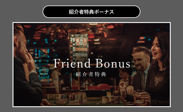紹介者特典ボーナスとは、エルドアカジノを友達に紹介し、友達が入金してカジノゲームで遊ぶともらえるボーナスです。