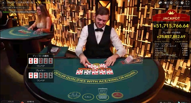 | ポーカーの種類 | ・Carribean Poker ・Poker3 Heads Up Hold’em ・Oasis Poker ・3 Card Poker ・PAI GOW POKER ・Casino Hold’em ・Casino Stud Poker |
