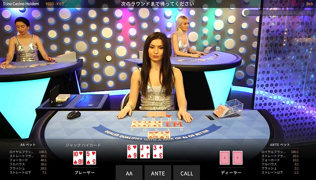 - ライブカジノ・テーブルゲームともに低額からポーカーを楽しめる。