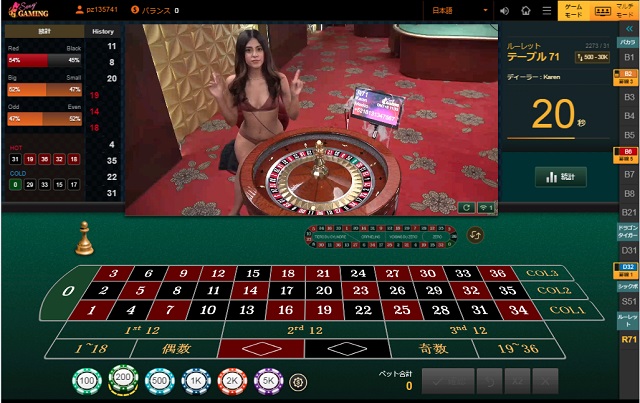 SexyGamingのルーレットはついついディーラーに目がいってしまいますが、実は統計機能が充実しているテーブルでもあります。イーブンベット、コラム・ダズンベットの出現率、過去100ゲーム以上の出目履歴など一通りデータが揃っているので、本格的なルーレット勝負をしたい方でも満足できるのではないでしょうか。