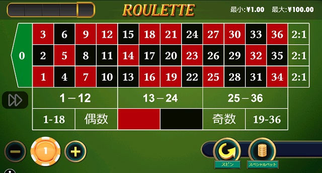 ベットリミット幅が小さいので本格的な勝負はできませんが、気軽に遊びたい時、ルーレット必勝法の研究にオススメです。