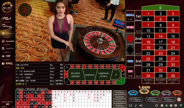 オールベットライブはドラゴンのロゴからもわかるように中国を連想させるサイトイメージです。ルーレットは1種類しか遊ぶことができません。ルーレット以外では「バカラ」「ドラゴンタイガー」「シックボー」「ブルブル」で遊ぶことができます。