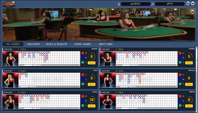 公式HPのトップページにある『ライブカジノ』メニューで各プロバイダーのアイコンをクリックしてください。クリック後、各プロバイダーのライブカジノロビー画面が表示されます。