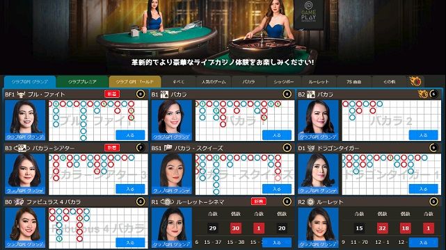 ゲームプレイライブのルーレットは2種類3テーブルあります。