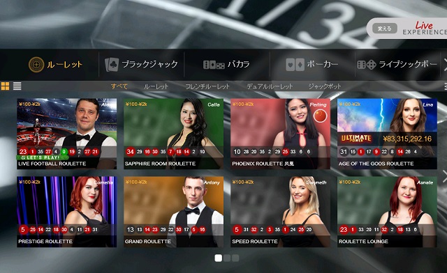 - 全14種のライブカジノスタジオ全てでルーレットが楽しめる
