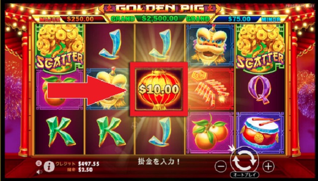 マネーシンボルとは、金額が書かれている特殊絵柄のことです。エンパイアカジノでは対象機種の中央に止まるマネーシンボルを「幸運のマネーシンボル」と呼びます。