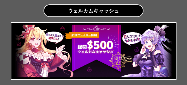 | ボーナス | ・$35入金不要ボーナス ・獲得保証$500ウェルカムキャッシュ ・ロイヤリティプログラム |