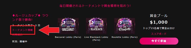 トーナメントのルールを確認したい場合は、各トーナメント欄左側にある「トーナメント情報」をクリックしてください。