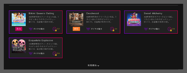 - 各ジャックポットの有効期間は対象ゲームを開くと確認できます