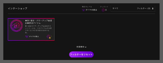 当抽選会の参加券はインターショップで初期レベル【ダイヤの騎士】から購入できるので、全レベルのプレイヤーに当選チャンスがあります。