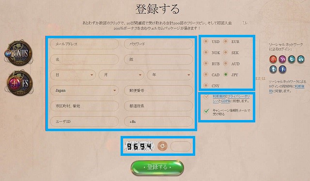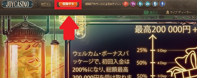 ジョイカジノは完全日本語対応ですので、スマホ・PC両方から日本語での登録が可能です。
