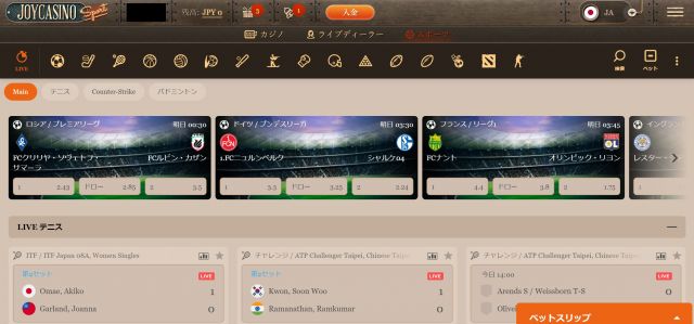 姉妹サイト・カジノエックスと同じく、ジョイカジノでは「カジノゲーム」と「スポーツベット」の両方を遊ぶことができます。
