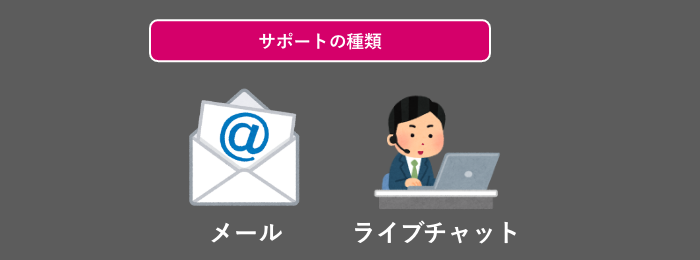 サポートの時間帯に関しては、ライブチャットが16:00~翌04:00、メール対応が24時間です。