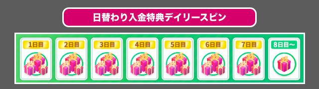 日替わりでボーナスが貰える(入金特典デイリースピン)