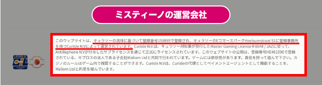 ミスティーノはキュラソーライセンス取得で安全性も高い!
