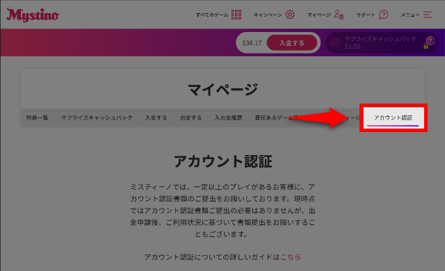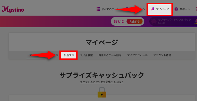 ミスティーノには「サプライズキャッシュバック」という独自ボーナスがあります。