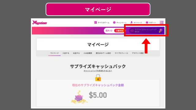 サプライズキャッシュバックとは、ミスティーノが独自に提供している還元型ボーナスです。