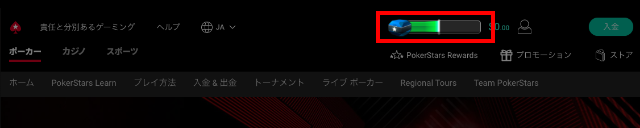 ポーカースターズではポーカーやカジノゲームでリアルマネープレイをするとリウォードポイントが貯まり、リウォードポイントが貯まるとプログレスバーが進みます。