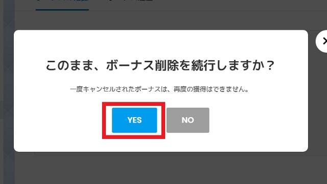 次に最終確認のメッセージが表示されます。「YES」をクリックすれば、ボーナス破棄完了です。