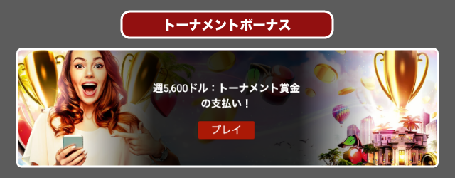 トーナメントボーナスは、ロイヤルベガスカジノで開催されるトーナメントで上位入賞した際に獲得できます。