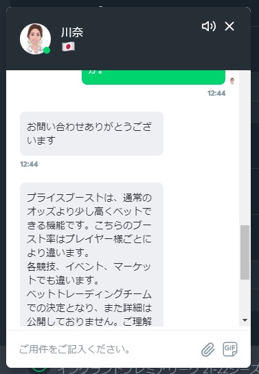 スポーツベットアイオーでは、ライブチャットとメールで24時間日本語対応しています。