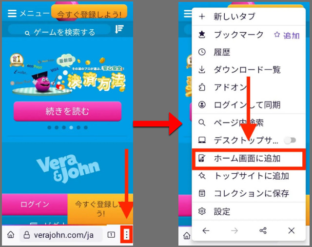 続いて、Androidのホーム画面にベラジョンカジノを追加する方法を解説していきます。