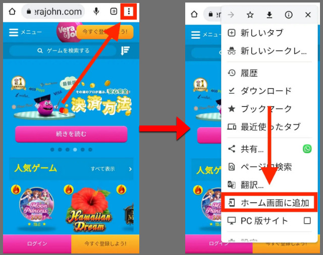 - ブラウザ版ベラジョンカジノはホーム画面に追加すればすぐに遊べる