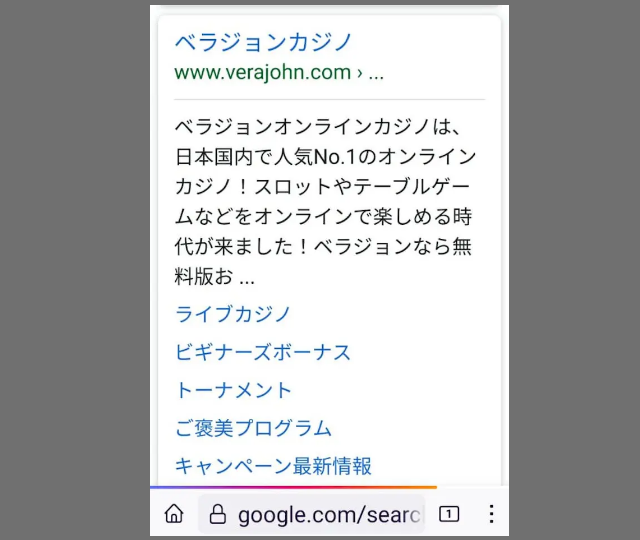 Safariを開いたら、『ベラジョンカジノ』や『Verajohn Casino』で検索し、URLに『https://www.verajohn.com』と書かれているサイトタイトルをタップしましょう。