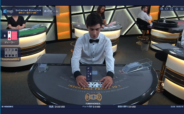 ただEzugiのブラックジャックは最低ベットリミットが$20以上のテーブルが多いのでご注意ください。最低ベットリミットを確認せずに座ると、一発目のベットで自分が予定した以上の金額を払うことにもなりかねません。