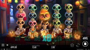 Esqueleto Explosivoはメキシコの死者の日がテーマのスロットです。RTPは96.0%。フリースピンはありませんが、当たりが続くとマルチプライヤー機能で配当が最大32倍までアップします。