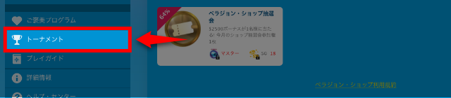 ベラジョンカジノのトーナメントページ一覧を開いてください。