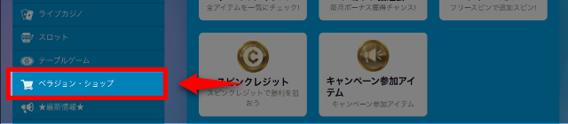 ベラジョンショップで購入できるボーナスアイテム
