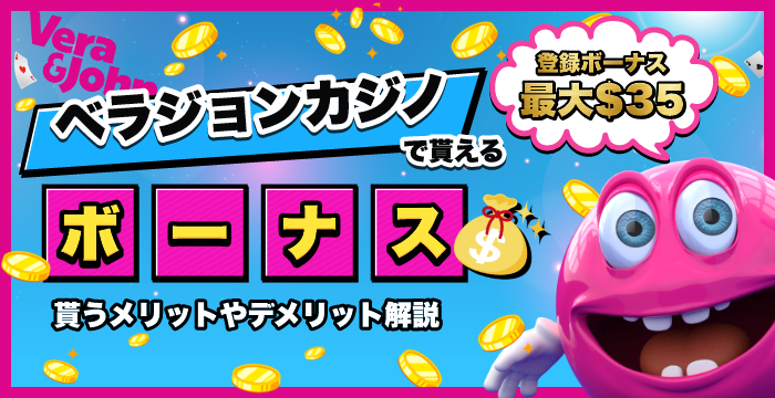 メリット・デメリットを踏まえるとベラジョンカジノのボーナスは、貰った方が良いでしょう。ボーナスを受け取ってもキャッシュと別々で計算されますし、禁止ゲームや除外ゲームがないので、オンラインカジノで遊ぶ上で縛りがほとんどありません。