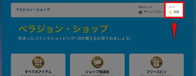 また、「ベラジョン・ショップ」メニューをクリックしてもご確認いただけます。
