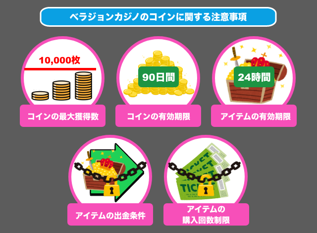 最後にベラジョンカジノのコインに関して知っておきたい注意点5つを解説していきます。