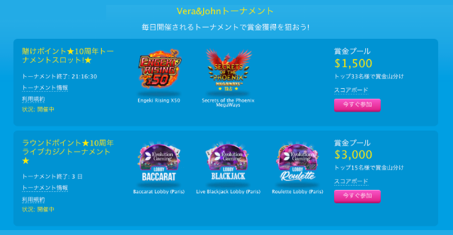 最後に、日本人限定のトーナメントです。完全日本語対応で日本人にも安心なベラジョンカジノでは、2014年から日本人限定のトーナメントも開催されています。