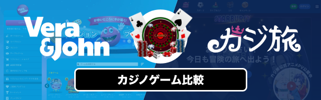 互いの良い部分を改めて比較してみて、ベラジョンカジノとカジ旅どちらか自分にあっているオンラインカジノか検討してみてください。もちろん両方とも実際に遊び比べてみてもOKです。